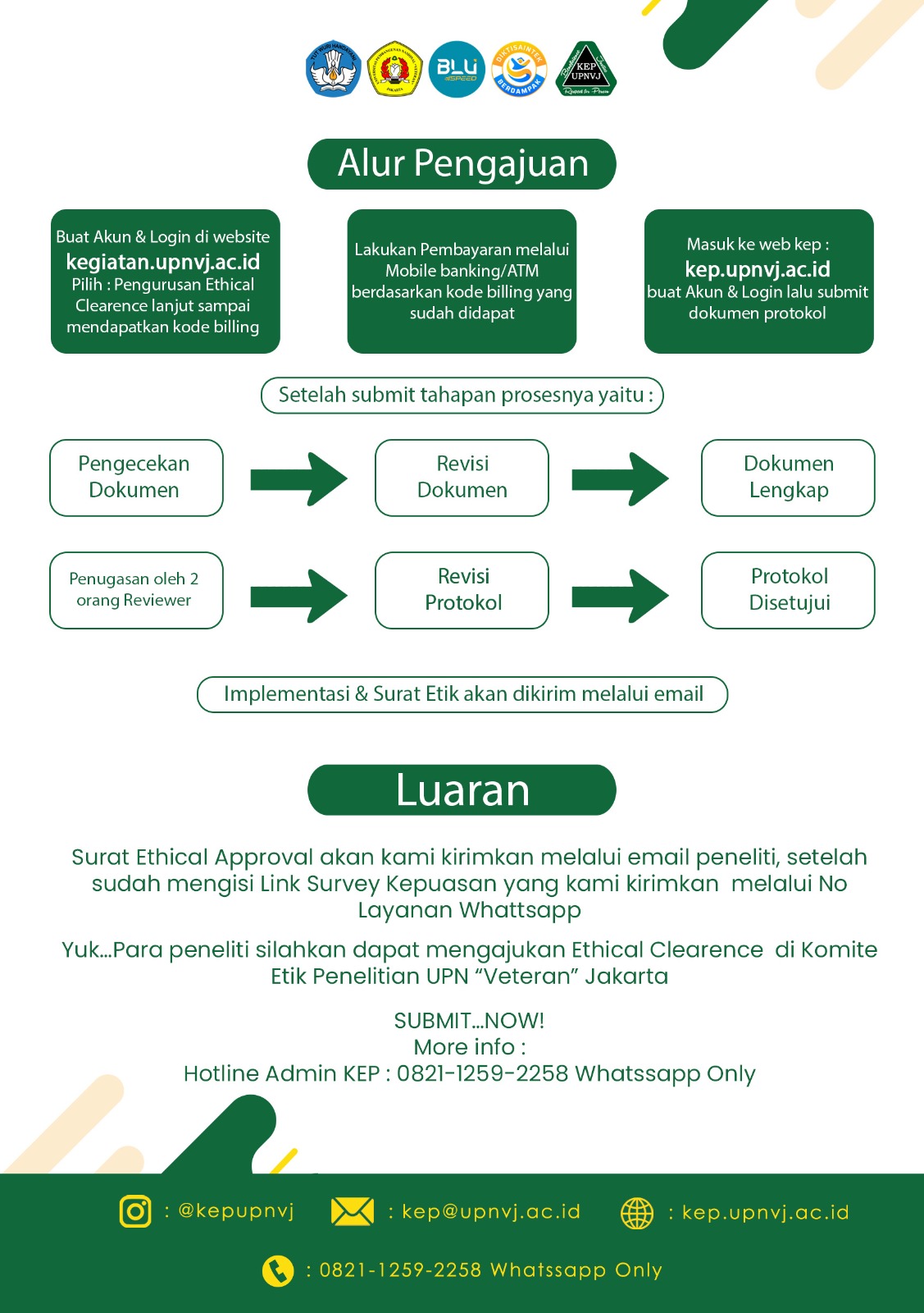 Kami mohon maaf atas ketidaknyamanan, apabila terdapat kebutuhan mendesak terkait pengajuan etik penelitian dapat menghubungi kontak admin KEP yang tersedia